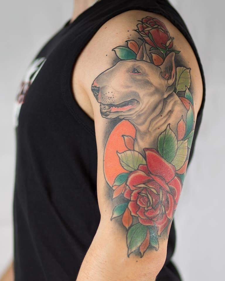 Bueno pues os cuento que el pasado 8 de julio preguntamos en nuestro Facebook si alguien tenía algún tatuaje de bull terrier estándar o miniatura y nos quedamos sorprendidos. Sabíamos que varios dueños de nuestros cachorros se habían tatuado a su mini pero no esperamos que fueran tantos y estamos seguros de que hay más. Y es que son muchos los que deciden plasmar a su fiel amigo para que le acompañe el resto de la vida.
